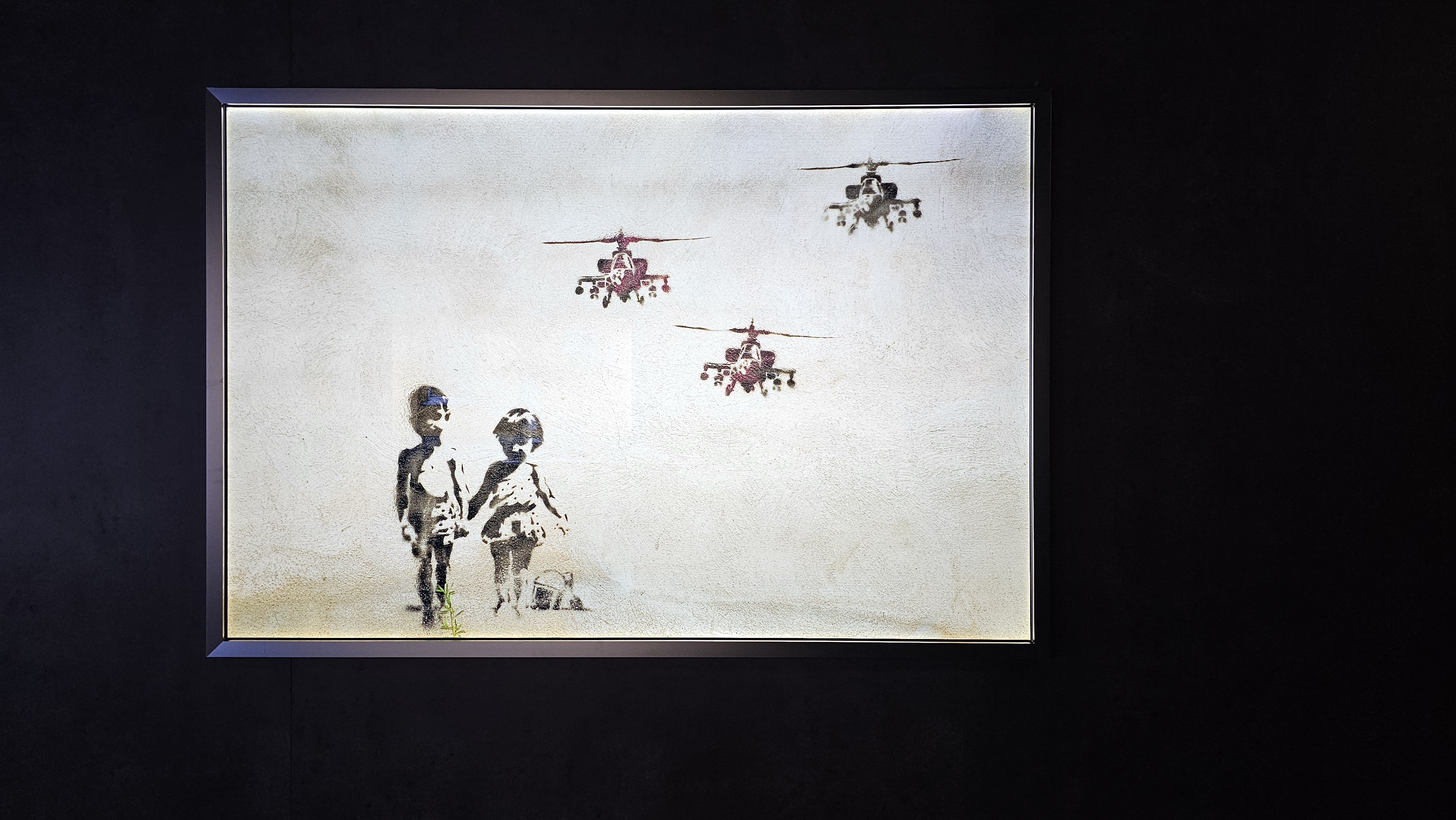 뱅크시 전시회에서는 다양한 전쟁에 대한 그의 생각이 드러나는 작품들도 볼 수 있습니다.