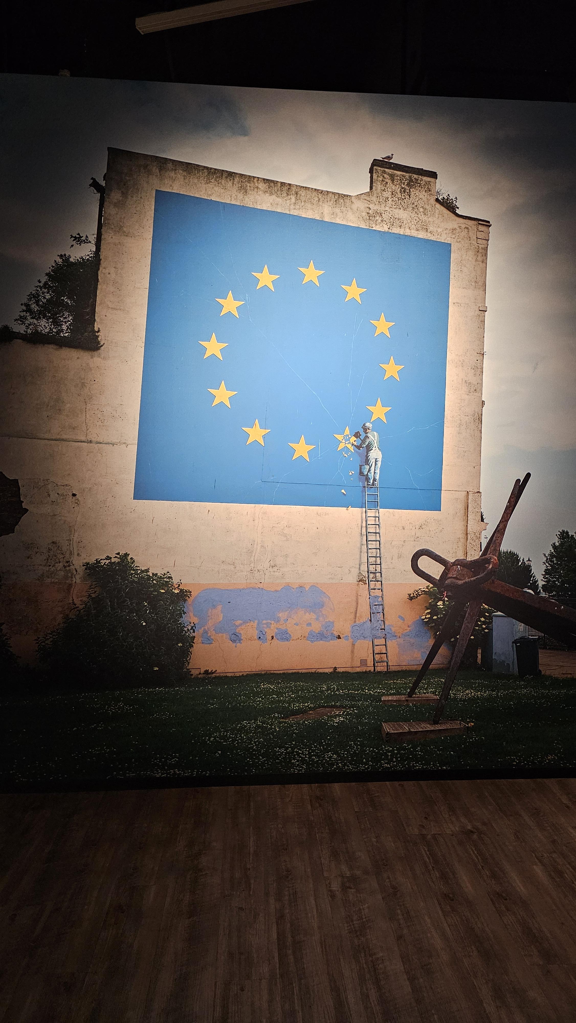 아래 작품은 영국의 브렉시트를 상징하며 도버 항구에 그린 벽화와 그 벽화가 훼손된 모습. 현재는 건물이 철거 되었습니다.