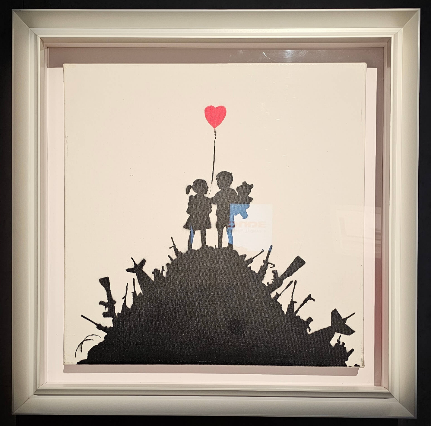 아마도 가장 잘 알려진 것은 2018년 소더비 경매에서 금박 프레임에 장착된 파쇄기가 자동으로 움직이며 풍선만 남기고 잘린 작품일 것입니다.